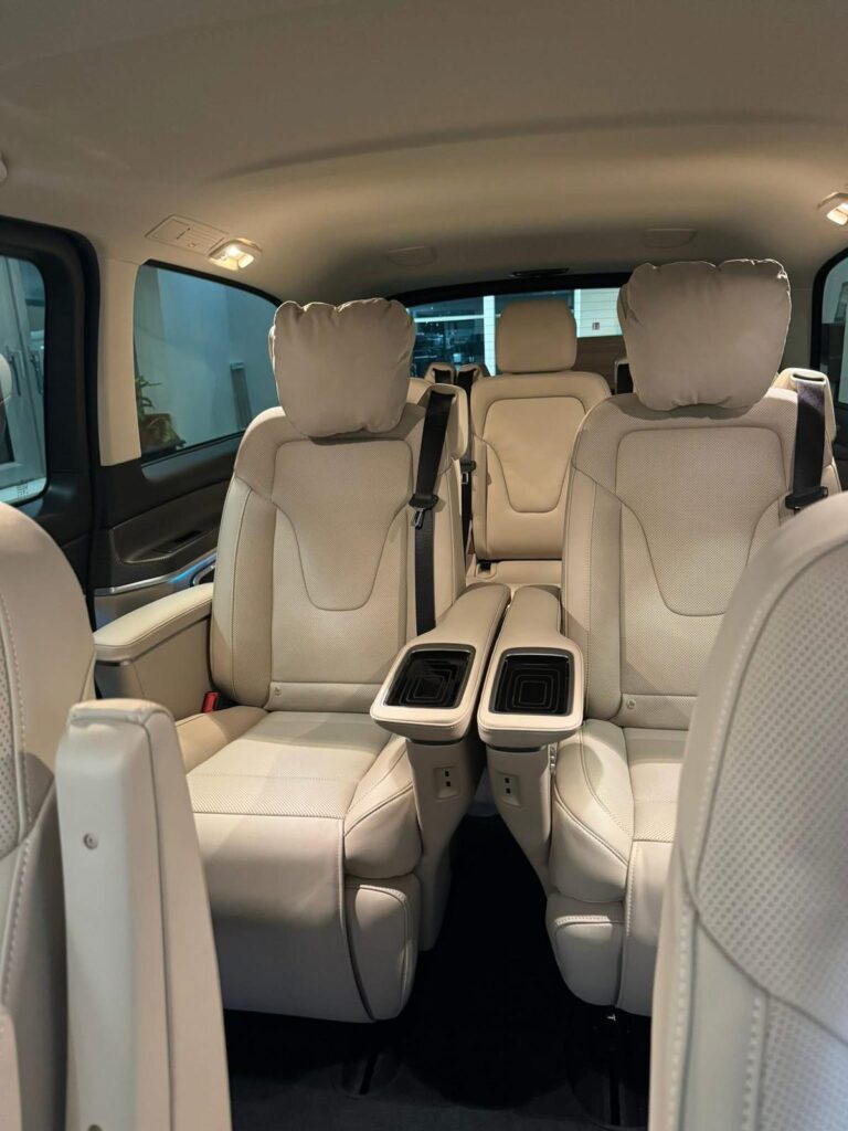 Wnętrze zostało zaprojektowane z myślą o maksymalnej wygodzie pasażerów – duże, indywidualne fotele z regulacją, mnóstwo przestrzeni na nogi oraz starannie wykończone wnętrze sprawiają, że każda podróż – czy to służbowa, czy prywatna – staje się wyjątkowo przyjemna. To idealny pojazd do długodystansowych tras w komfortowych warunkach.